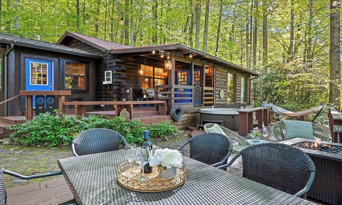 Perfect for couples! Modern, Private + Hot Tub, Fire pit, Fireplace & King Bed is located in Maggie Valley. Perfect for couples! Modern, Private + Hot Tub, Fire pit, Fireplace & King Bed provides accommodation, featuring TV, Barbecue/Outdoor Cooking, Hot Tub, among other amenities. This Cabin features TV, Barbecue/Outdoor Cooking, Hot Tub, to make your stay a comfortable one.