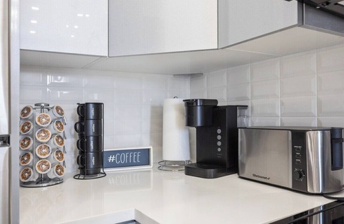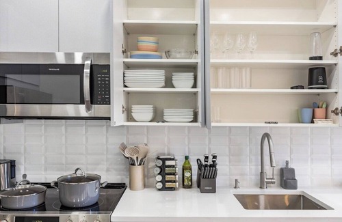 In addition to hotel-like bedrooms, the apartment features a relaxing living room with a fully equipped kitchen and an inviting dining area (seats 3). Natural sunlight accents the tastefully picked furniture to reinforce the modern style and create a beautiful ambiance in our contemporary apartment.