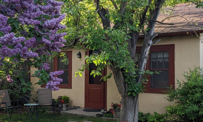 Access to Yellowstone Park from our north entrance was fully restored October 30, 2022 with a beautiful new road! Our sweet backyard cottage is nestled among the fruit and flower trees of the yard. It is easily within walking distance to the grocery store, coffee, shopping, restaurants, laundromat, post office, and local arch park events. It is at the north entrance to Yellowstone Park, as is all of Gardiner. The cottage is in the heart of town but shielded from the main street by the owners' home. The yard is shared with the owners but privacy is afforded by the layout. The owners' home was built in 1930 and its cottage was built in 1940 by former owners, the Eastons. It is believed that their intent was to rent the cottage to visitors of Yellowstone, making it a very early vacation rental in this town. The cottage is a perfect fit for two people who want to day trip to northern Yellowstone, book local activities like rafting, biking, horseback riding, and return to a simple, basic, clean environment to relax. Our guests note that the well cultivated green and floral landscaping add to the charm and character of their experience. The stucco cottage still has the details of its early history with the old style glass door knobs and kitchen cabinets. There is a comfortable queen bed, sitting area with Smart tv, eating area, full but small kitchen, and full bathroom. It is clean, well cared for, and you are welcome! We keep our reservation calendar updated to the minute and our description on this page accurate. So as you're reading this page if Lilac Cottage sounds like a good fit for you and if the dates you want are open on our calendar and you have no questions, you are welcome to book directly without contacting us (use Instant Booking option). Just follow VRBO's process with your credit card. We'd be in touch immediately upon booking, through VRBO. If you do have specific questions not answered here, please email Eleanor through VRBO. NOTE: Because the lilacs and other historic bushes and trees were planted in 1930s and 40s, Tom is constantly pruning and removing sections for new growth.