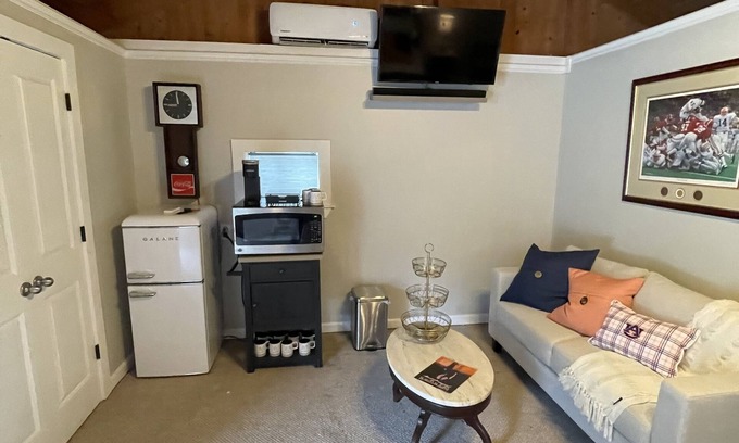 Private apartment off the main house. This is a cozy warm spot with surround sound TV . Great to watch the pre/ post game or just a quiet place to hang out when you are in Auburn on business. Guest will love the quietness and the location of this apartment that was just remodeled and full of new amenities. Downtown is only a half mike away and the stadiumless 1 mile away. No smoking ever