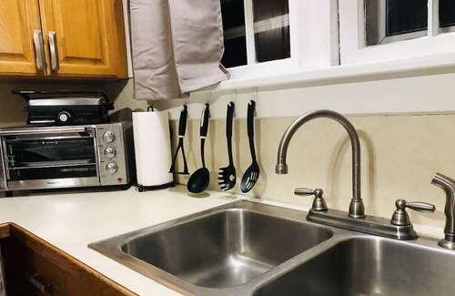 You will be min way to everything when you stay at this centrally-located duplex, have Beautiful relaxing backyard Warm up with a nice fireplace, gazebo, nice eating space table with 6 chairs, TV & projector to enjoy movie/music. This unit has two bedrooms with TV, one king and one queen size beds (there's extra mattress if it needs it). This unit has high quality throughout. A fully equipped kitchen, dining and living for six people, different seating areas around the house. cheerful welcome!