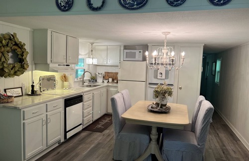 Newly and completely renovated throughout, its beautifully decorated and very clean. Double oven, complete set of pots and pans, Keurig coffee pot, electric teakettle, toaster, microwave and dishwasher. Lighted covered parking, Large comfortable living area plus enclosed sun room. Large fenced yard perfect for outdoor games plus a fire pit for s'mores by the river.
