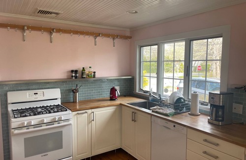 The home features a fully stocked kitchen with all new appliances and accessories. Cozy up to the fire after a day of wineries and/or apple picking and let the kids or friends enjoy the warm family and TV room to watch sports, movies or play video games on flat screen TV. Both the family room and kitchen have sliding doors to the gem of the house - a fully furnished screened porch that looks out onto the open backyard with plenty of room for games and activities. There is a firepit to stay warm in the cool evenings. Three bedrooms with room for 9 to sleep. Two modern bathrooms plus an outdoor shower. There is a local family park located two blocks away. Additional amenities include brand new gas grill, smart TVs in family room, living room, and each bedroom, washer and dryer, and parking for 5 cars.