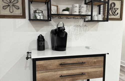 The accommodation boasts two queen beds ensuring a restful night's sleep for all. Wake up to natural light streaming in through the skylights in the breakfast nook, creating a tranquil and uplifting ambiance to start your day. Make yourself a cup of coffee using the Kuerig at the coffee bar, and then enjoy a quiet morning stroll through the neighborhood. The private entrance allows for complete privacy and convenience during your stay. There is room for parking two cars right outside the Hideaway's door, on an asphalt driveway, so no climbing stairs and paved roads all the way to this little gem. This Hideaway is seperate from the main house, which is a private residence, and has its own seperate driveway, and touchpad key entrance.