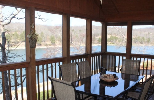 Relax and enjoy a cold drink or cup of morning coffee on our screened in porch overlooking the lake with amazing Ozark Mountain views. It's a great way to start or end the day!