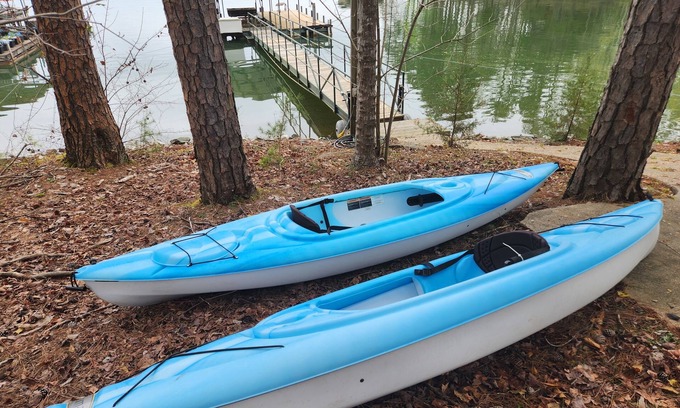 This charming home is ideal for couples, a girls' weekend, or a small family getaway. Enjoy fishing from the private dock, bringing your boat, use our adult kayaks or swim in the protected cove. Have great conversations on the screened back porch, build a cozy fire, or snuggle on the couch with a glass of wine. Take a peaceful walk on the residential peninsula, read a book, and wake up to a stunning lake view while sipping your morning coffee.