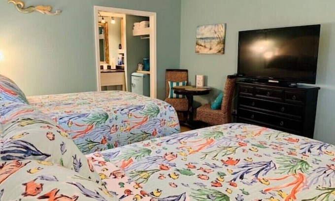 Older but charming hotel complex that is two blocks from the beach, the main pier on Tybee, and main strip! Just steps outside of your room is the newly remade pool and deck area. An easy walk to many restaurants and bars. Right on the main strip of Tybee. Plenty of shopping and local music. Small island with a big heart .