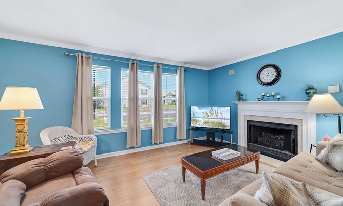 This coastal retreat offers all the comforts of home and more! The spacious living room, adorned with beautiful coastal decor, is equipped with a Smart TV with local channels for your entertainment needs. Step outside onto your private patio, conveniently located just off the living room, to savor your favorite beverage as you witness a delightful sunset.