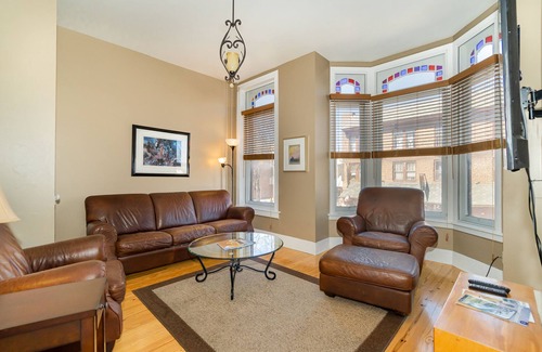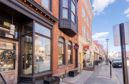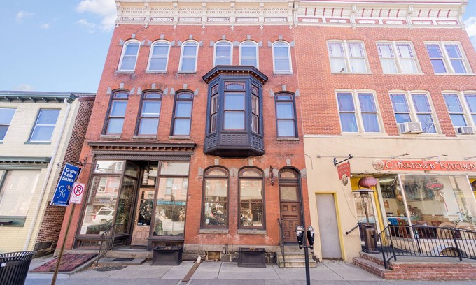 Built in the 1840's and newly renovated, this 2-level, 4-bedroom Italianate-style townhome apartment reflects the Federal majesty of the mid-1800's, and the individualistic expressions of post-Civil war Gettysburg. Street-facing windows on the main level are accentuated with stained glass, creating a feel-good rainbow effect in the common area parlor and dining room.