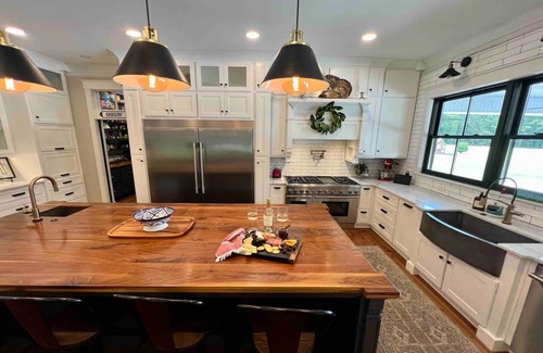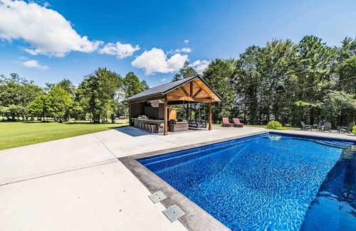 Come experience luxury at this rental. We offer resort amenities at our family estate overlooking grazing pastures. We sleep 21 comfortably and feature a chef’s kitchen, large comfortable furnishings and amenities galore! Picturesque views, large pool, hot tub, games, outdoor kitchen, bed swings and 2000sf of covered porches make this the ideal getaway for your group.