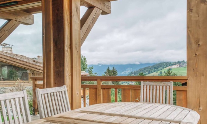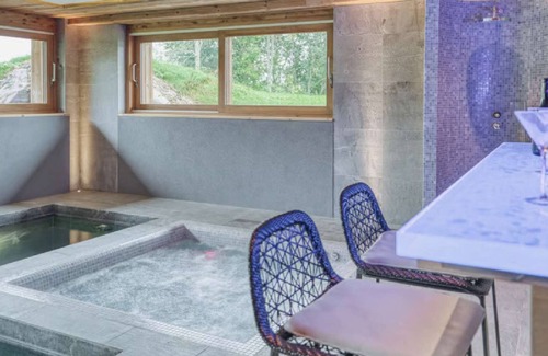 The basement of this stunning chalet contains a ski room , a cinema room, a fitness room, a lovely heated swimming pool, and a relaxation area with hot tub, sauna, hammam and a massage room, the ideal spot to relax after a day on the slopes.