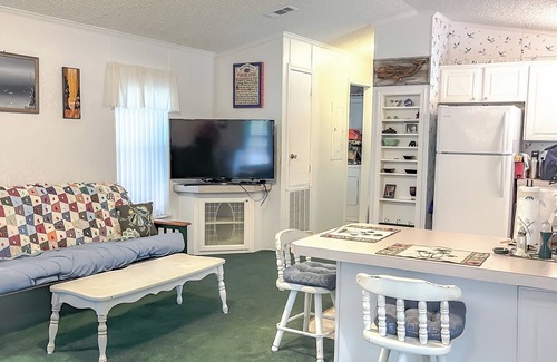 Your perfect get away cabin awaits in the heart of the fishing village of Suwannee, FL, where the Suwannee River meets the Gulf of Mexico. Come enjoy all Suwannee has to offer in this cozy single wide mobile which is has all the comforts of home. Enjoy the outdoor lifestyle with plenty of spaces to gather or relax. Although the entire home is lifted, you will have the convenience of an elevator or stairs. The entire home is wrapped in a porch that is partially enclosed on one side, making a nice place to kick back and read a book and enjoy a drink. The entire area under the home is concrete, and allows for a great cookout and gathering spot. There is even your own fish cleaning station, for prepping your catch after a day on the water.
