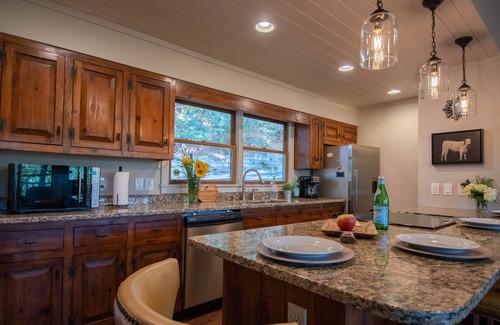 Newly renovated and beautifully appointed indoor and outdoor living with 2 luxury king bedrooms with their own baths. Relax and enjoy the 9 ft. bar in the all stainless steel and granite kitchen, an entertainers dream with an open floor plan to the well-appointed living area complete with stone fireplace, vaulted wood ceilings, and solid hardwood floors throughout the home. Enjoy the new HVAC system and watch your favorite sports or movies on the new 55" 4K Flat screen TV with High Resolution sound bar.