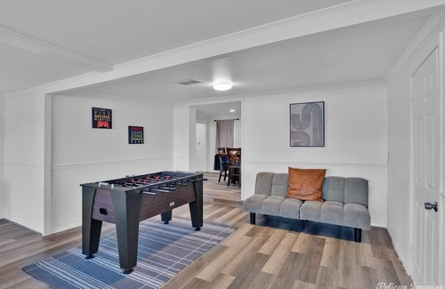 Forget your worries as you gaze out of the wall to wall windows into the open lake and get carried away by the serenity of the lake's natural movement. Bring the whole family and create unforgettable memories. This large house has everything, games, fully loaded kitchen, washer, dryer, plenty of parking and more. 1 king bed, 2 queen beds, 2 full beds and futon, with 2 full bathrooms. If you see this booking, hurry and book before others, it won’t be available for long. ***Due to recent storm the dock is unavailable.