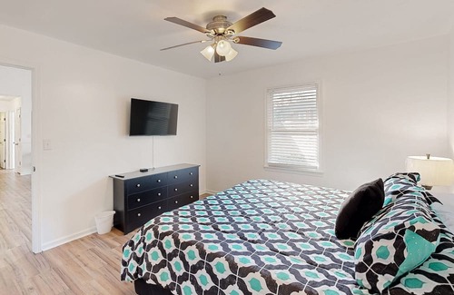 Located minutes from all thoroughfares leading in and out of the city, Blue Haven is an ideal Salisbury retreat. Named after its fun pops of turquoise, Blue Haven oozes with an abundance of curb appeal from the moment you pull up the drive. Walking inside, you will immediately take notice of the living room's high ceiling, leather furnishings, and large smart TV. Steps from here, the fully equipped kitchen is sure to delight any chef with its stainless steel appliances, ample meal prep space, and in-kitchen dining table.