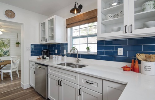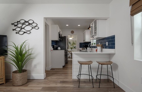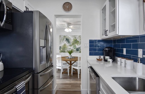 A recently remodelled hideaway cottage only 2 short blocks from the heart of Downtown Dunedin? Palms Cottage is a 2 bed 2 bath quietly situated behind its sister rental, Pickets Cottage. This home away from home offers the perfect blend of peaceful privacy and “location, location, location”. Enjoy a modern, fresh decor with a fun pops of Florida colors and spacious, light-filled rooms.