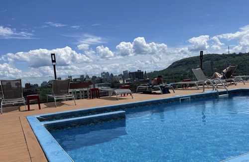 Have a dip in the pool on the rooftop terrace and take in the view of the city, Mont-Royal mountain, and gorgeous sunsets.