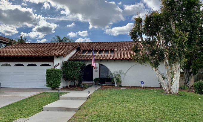This Orange County home is located on a safe cul de sac street & quiet residential neighborhood. A perfect family home. The home is a 5 minute drive off the 5 Freeway. The single story home has 1700 sq. ft. and a huge backyard, perfect for Barbecuing and play area for children. The backyard also offers a large patio and furniture with a great view. The home offers free high speed Wi-Fi, Netflix, Disney Plus, and Amazon Prime. An open kitchen with all the appliances you need overlooking the backyard, Large Dining Room, 3 separate private rooms, and a Inviting Living Room with Large, Comfortable Couches. The Master Bedroom and back bedroom is very spacious and has California King Beds in each room. This recently remodeled home has hardwood flooring that runs throughout the home.