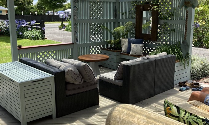 A large covered outdoor area with barbeque means you can enjoy the lovely Golden Bay weather whilst eating or just relaxing after a day on the water.