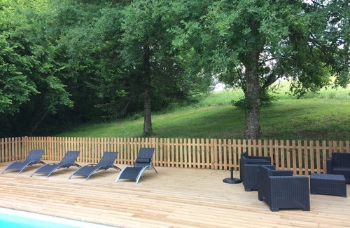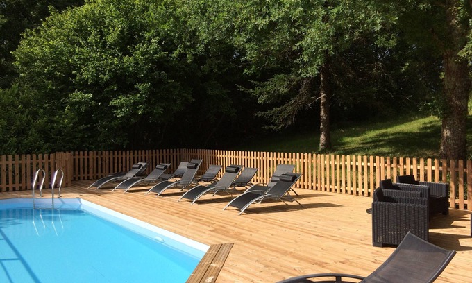 The pool is secure and not shared, with a wooden beach of 150 m2, equipped with deckchairs and garden furniture.