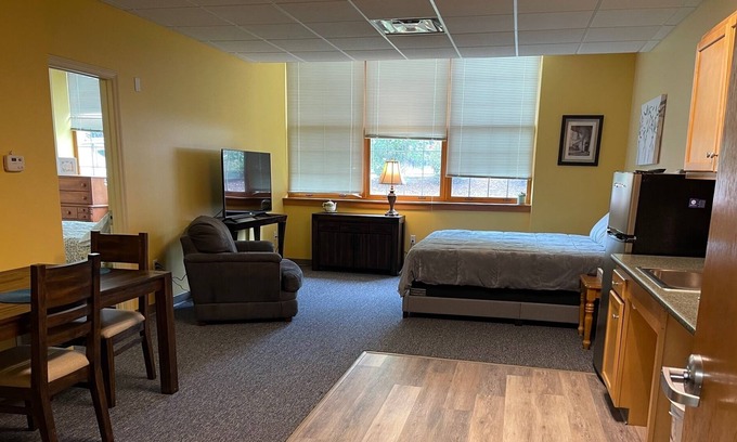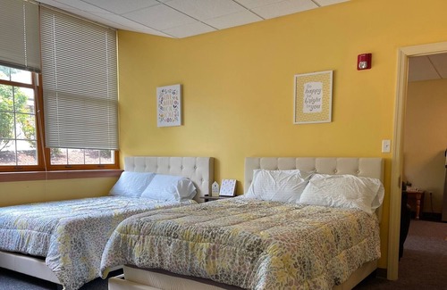 The apartment features 2 bedrooms, the 2nd bedroom is connected to the bathroom and the 1st bedroom is located in the same room as the and kitchenette. This room includes a flat-screen TV, an equipped kitchenette with a microwave, toaster, mini fridge and coffee maker. 1 bathroom with a walk-in shower. Towels and bed linens are provided in the apartment. Amenities include shampoo, conditioner, lotion, soap, toothbrush and tooth paste along with a little welcome bag with coffee, tea, sugar, creamer, and honey.