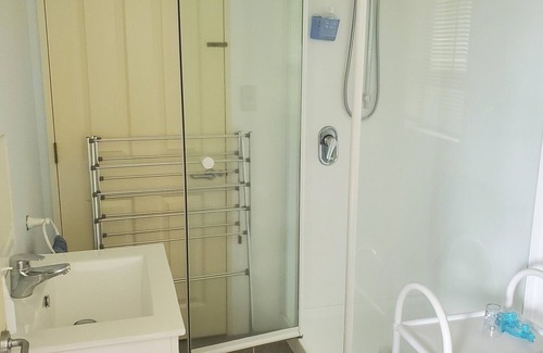 Nestled on the hill above Kuaotunu Beach with its commanding sea, bush and rural views. This cosy two bedroom cottage is the perfect place to relax, unwind, enjoy the natural beauty that surrounds you. Abundant bird life and friendly farm animals add to this peaceful setting far removed from city life. The cottage is bright, sunny, comfortable and private. The double room has a Queen size bed with cotton bedding, it's own bathroom with a bath & shower and a glorious view out to sea. The dining room has basic cooking facilities as well as a fridge, coffee machine, variety of teas, coffee & milk. The second bedroom has two single beds, with it's own bathroom. There is a TV/DVD in both rooms. A selection of DVD's are available for those wet days to chill out. The whole building is 70 square meters with a terrace along the front with outdoor seating and a Barbecue.