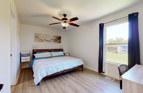 Our 3-bed, 2-bath home is just 5 minutes from Fort Campbell gate 4 (main gate). We pride ourselves on attention to detail and providing premium service to you and your beloved pets. We offer fully equipped kitchen for all your cooking needs, spacious living room relaxation and entertainment, 3 private bedrooms, each with designated study areas, and a fenced-in backyard for pets. It's a great place to relax and recharge with your family, friends, and your pets. We can’t wait to welcome you!