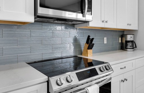 A Benchmark initial starter kit of amenities are provided for all guests. For the kitchen this includes: 1 roll of paper towels, 1 dish sponge, 1 dish soap, 2 dishwasher pods, and 1 liner for each trashcan. For each bathroom it includes: 1 roll of toilet paper, 1 set of soap/body wash/shampoo/conditioner/lotion. For towels you will receive: 1 body towel/1 washcloth per guest and 2 hand towels per bathroom, plus 2 washing machine pods.