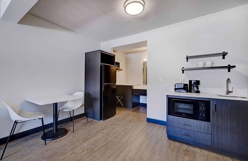 Experience an unforgettable stay where our commitment to quality is evident in the vast range of carefully chosen amenities that enhance your stay. Take advantage of our coin-operated laundry machines and vending machines conveniently located on-site. Enter your vibrant, inviting room, which is furnished with lavish blankets to wrap you in warmth. Our kitchenette is equipped with essential amenities like a microwave, coffee maker, and refrigerator to enhance your convenience. Additionally, we offer free parking for our guests.