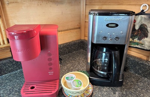 The side porch has a fountain during warmer months for relaxing with your family and friends or to sit and read that book you've been meaning to enjoy. It also has seating and a small table. A gas grill and charcoal grill are provided so you can choose how you would like the hamburgers, hot dogs and steaks to cook on.