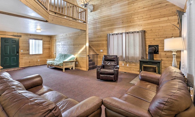 Take in all the sights of Utah when you book this charming 3-bedroom, 2-bath vacation rental in Fruitland! Perfect for your next family getaway, this cozy cabin is set on 15 acres of land with fantastic views right outside your door. Explore the 15 acres of property via ATV, cook a fun and flavorful meal on the gas grill, and roast s’mores over the outdoor fire pit. If you’re looking to venture out, drop your fishing line in the Strawberry Reservoir or hike to the top of Currant Creek Mountain!