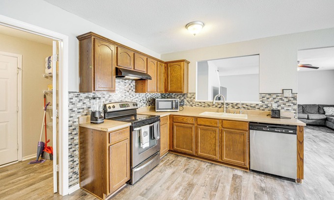 Treat your family to a fun-filled retreat at this 5-bedroom, 2.5-bath vacation rental in Camby. Featuring a spacious interior, a full kitchen, and a fenced-in yard for your furry friends to run and play, this home is ready to accommodate your every need. Explore White River State Park or cheer on the Colts at Lucas Oil Stadium, then head home and stream your favorite shows.