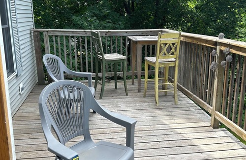Get ready to relax in this marvelous 3-bedroom house in Houghton. With 3 queen beds, 2 full bathrooms one with a tub. In addition there’s a cozy basement space with a projector for vintage video games a twin bed and futon. The basement opens out to a 1/2 acre of yard space with a charcoal grill and a heating lamp. On the middle floor there’s a large deck off the family room with a fire table that offers fantastic views of the canal.