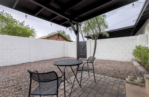 This cozy mid-century modern haven is equipped with all the amenities you need for a comfortable and extended stay. Near freeway access and ideal for traveling healthcare professionals being just 1.3 mi from Abrazo Scottsdale Campus and 3.7 mi from Mayo Clinic. Plus, it's pet-friendly with a dog park only a 3-minute drive away. Savor your morning coffee in the quaint backyard or grab a quick cup at the many nearby coffee shops. Available for longer stays if needed, please ask :)