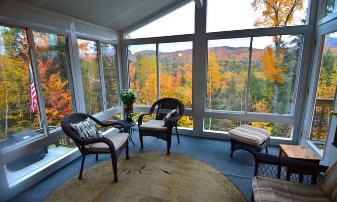 Welcome to Bullwinkle's Retreat! This 4-bedroom private, pet-friendly deluxe vacation home can sleep up to families of 12 or 8 adults with an additional bonus room! Drive to the dead-end road and enjoy this private retreat at the end of the road! Walk in the Front Door to a foyer and 2 car garage. The main level offers a fully equipped kitchen, dining room table, and relaxing living room with a tv and half bath. Enjoy the Solarium with beautiful mountain views year-round. Walk up the stairs and enter the game room with a Pool table, twin beds, and additional living area. Bonus Room with Trundle Bed (2 twins) and bathroom on this floor as well! On the other side enter the Master Bedroom with a Private Bathroom. Lower levels bring 2 additional bedrooms to be able to spread out with 2-3 families with a bathroom! Sit by the Outside Fire pit to enjoy your Vacation Home! Gas grill for use during the summer and fall months. Plenty of room to spread out while you enjoy the White Mountains! Hiking, swimming holes, biking, and walking nearby! Enjoy Waterville Valley resort only 8 miles where in the summer you can golf, play tennis, swim, rent boats, shop, and explore. Many hiking and walking trails as well. Mountain Bike Rentals going up Snow's Mountain! Public Recreation Center with several activities throughout the week. Winter offers Waterville Ski resort with ski rentals, lessons, and great snowmaking! Several Cross-Country trails to explore as well as snowshoeing and fat bikes! Tubing and year-round ice skating are also available! Close to Exit 28 where you can explore more of the White Mountains with Loon, Cannon and Bretton Woods all within 30 minutes away! Home can sleep up to 8 adults or families of 12. Gas Grill is only available in the summer and fall. Dogs are allowed with an additional fee and the Owner's approval. Please use the full-size sheet provided to put on couch. No cats. This is a non-smoking rental property. Age min. of 24 for all adult groups. Meals & Rentals License # 064279