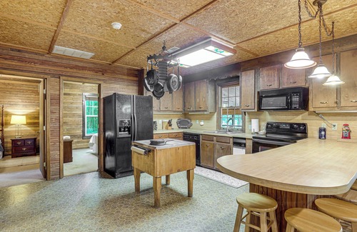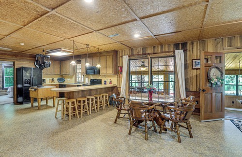 The rich history and calm countryside of Ehrhardt await you and your family at this roomy vacation rental! Boasting amenities like a private pond, plenty of seating, and a fire pit, this 2-bedroom, 1-bath home is perfect for a relaxing retreat. When you’re not canoeing or enjoying a cold drink on the patio, head to Rivers Bridge State Park for a day of bird-watching, hiking, or biking. Afterward, return to this abode and pull out the board games before a family meal in one of the dining areas.