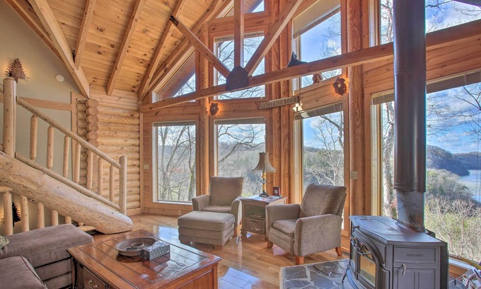 Dreaming of a lakefront getaway? Look no further than this vacation rental in Highway! The 4-bedroom, 3-bathroom log cabin features a loft, 2 entertaining spaces, and a well-appointed kitchen. Kick back on the screened-in porch and watch your favorite movies and shows, soak in the private hot tub, and take in the view of Dale Hollow Lake from the deck. To top off your stay, visit Big South Fork National River and Recreation Area for outdoor adventures like whitewater paddling and rock climbing!