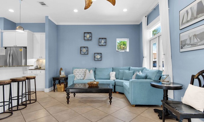 Sky above, sand below, peace within. Such serenity is absolutely possible at this South Walton beach vacation home. Decorated in soothing neutrals and accented with coastal touches, Knee Deep is the perfect beach getaway for families including your 4-legged family members.