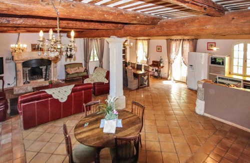 The house is spread over two floors and can accommodate a family with its four inviting and spacious bedrooms. The authentic interior in rustic-Provencal style made of noble materials is well maintained and the huge living room with integrated kitchen opens onto the garden.