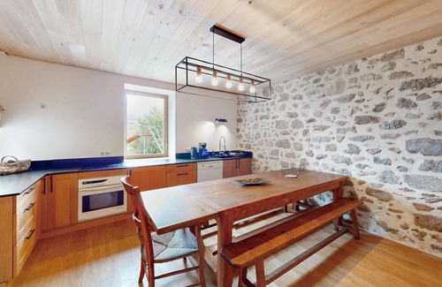 This lovingly renovated holiday home combines historical charm with modern comfort. Exposed half-timbering, stone and brick walls lend the large, open-plan rooms a warm and inviting atmosphere. Linger in the fireplace room, enjoy meals together in the spacious dining kitchen or read bedtime stories in the cosy children's bedroom under the roof. The table tennis table is ideal for active hours, and you can enjoy the tranquillity of the surrounding nature on the terrace or in the garden.
