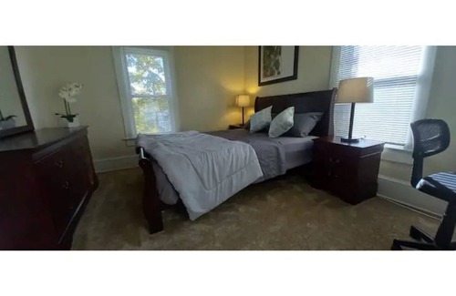Finished attic has bunk beds and a large area for yoga and exercise. Parking for 4 cars and the 3 lots beside the house to use for your dog.
