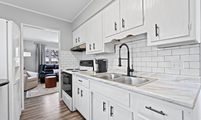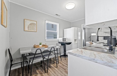 The house boasts two bedrooms, each with comfortable beds and fresh linens. The kitchen is fully equipped with all the appliances and utensils you need to prepare delicious meals during your stay. But what truly sets our home apart is the private fenced-in yard, perfect for relaxing or playing with your furry friend. For those traveling with a car, our home includes a garage, so you can rest easy knowing your vehicle is safe and secure!
