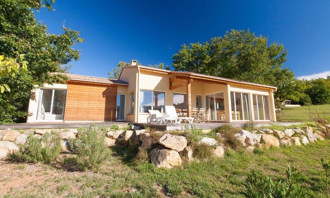 Comfort in the Heart of Nature Nestled on a serene green estate at the base of the Pyrenees, Résidence L'Espinet offers the perfect blend of nature and comfort. Located just minutes from the charming town of Quillan, this detached, ground-floor holiday home is ideal for families or groups of up to seven. Relax on the semi-covered terrace, breathe in fresh mountain air, and soak in views of the rolling hills right from your garden. Spacious, Stylish & Fully Equipped Inside, you’ll find a bright, open-plan living space with a cozy seating area and flat-screen TV. The modern kitchen features everything you need—from a dishwasher to a coffee machine—to prepare home-cooked meals. The home includes three bedrooms (two with twin beds, one with three singles), two bathrooms, and separate toilets. With air conditioning or floor cooling and high-speed fiber internet, your stay will be as comfortable as it is connected. Pet-Friendly Adventures & Local Flavors Your pets are welcome here—and they'll love it too! Take scenic walks along the nearby Aude River, or explore pet-welcoming trails like Gorges de la Pierre-Lys. In Quillan, grab a bite at cafés with outdoor seating where furry companions are greeted with a bowl of water and a smile. Don’t miss the local market and restaurants offering hearty Languedoc dishes like cassoulet or trout from the Aude.