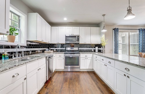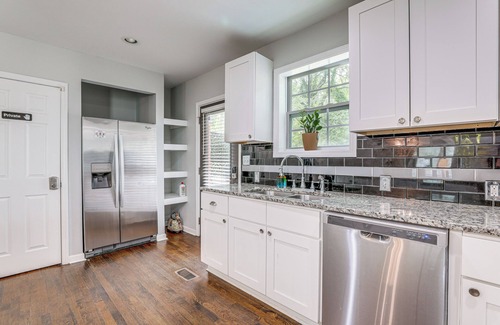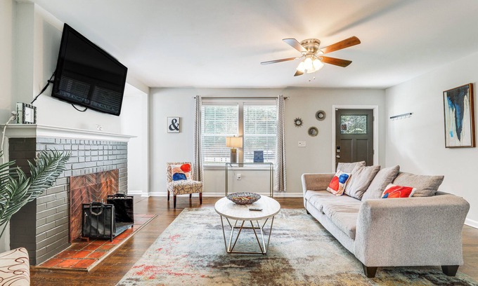 Discover a serene retreat at this 3-bedroom, 2-bath vacation rental in Atlanta. Here, you can escape the hustle and bustle of the city without straying far from the action! This peaceful home features a shaded outdoor living space where you can fire up the grill for a BBQ, toast s'mores by the fire pit, or sit back and relax in the hot tub. Inside, curl up and stream your favorite movies!
