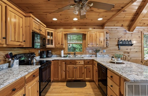 Relax in the hot tub or sip a drink by the firepit of this 2520-sq-ft cabin, which also offers a BBQ grill. For a change of scenery, come inside and try your hand at foosball and billiards, or enjoy the WiFi and TV.