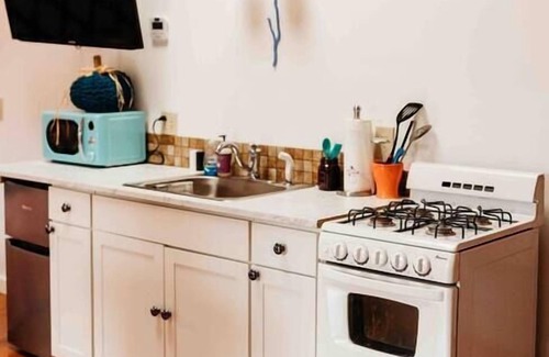 Full bathroom with a shower, sink & toilet. We provide shampoo, body wash and towels. If you require special soaps please bring your own.