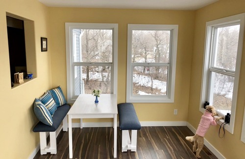This fully-furnished, three bedroom property sleeps 7 people very comfortably. All bedrooms have new beds and linens. The master bedroom and bedroom #2 are furnished with queen size beds. Bedroom #3 is also furnished with a queen size bed and an additional twin bed. There are two bathrooms in the cottage, one full bath and a half bath. The open-concept living space features a full kitchen stocked with cookware, coffee maker, microwave, toaster, Margaritaville, and top line stainless steel appliances (electric cooktop, oven, fridge with freezer, dishwasher). The large dining room table seats 8 people comfortably, and the all-season sun room provides additional places to sit and play board games. Cottage features a flatscreen TV, blue ray player, sound bar speaker with woofer, and high quality leather couches. Bring your favourite DVD/blue-rays and enjoy a relaxing movie night in!