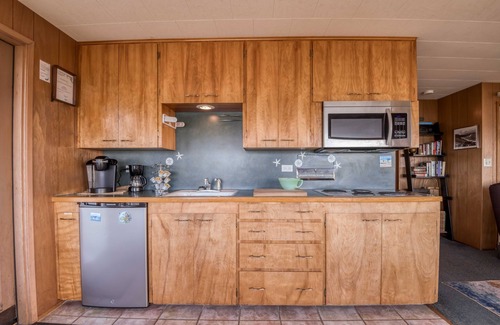The living room and kitchen are all interconnected, making it easy to whip up a quick and easy meal while enjoying your partner's company. Please note that this unit offers an electric cooktop, no oven, along with two toaster ovens. There is also a mini fridge for you to store any small items in, such as water bottles or milk for cereal. You'll have an amazing picturesque view from this area of the ocean any time of day! Relax on the couch and watch a movie, or enjoy a nice warm fire. You'll also have Wi-Fi access while staying at Serendipity, so working while on your stay will be easy. Depoe Bay is well known for its abundance of whales, so we're sure you'll see a few while on your vacation. Make sure to enjoy the hot tub while on your vacation as well! Enjoy a nice soak in the summer months or warm up during the winter! The bedroom is located right off of this main room and contains a queen size bed. The bathroom contains a stand-in shower.