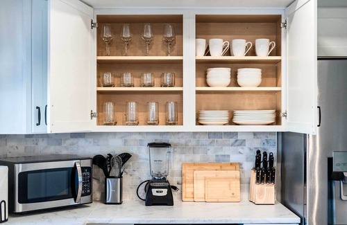 As you settle into this 3-bedroom, 2-bathroom rental, you'll find air conditioning and a ceiling fan. The kitchen is equipped with an oven, a stovetop, and a dishwasher, as well as a coffee maker, an ice maker, and a microwave.