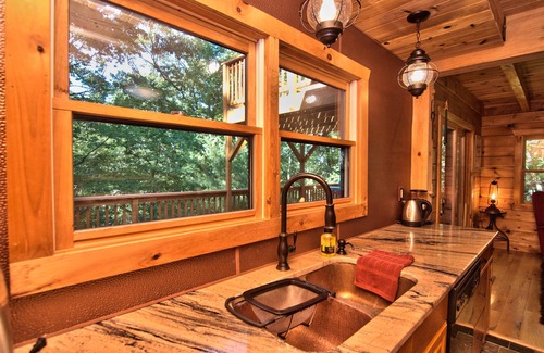 This is the classic mountain log home. This cabin has quality touches like granite counters, pantry, LARGE bedrooms, Master suite on first floor, Front Porch, Decks off all of the bedrooms, Huge screened-in deck with 6 person Jacuzzi, three levels of living.